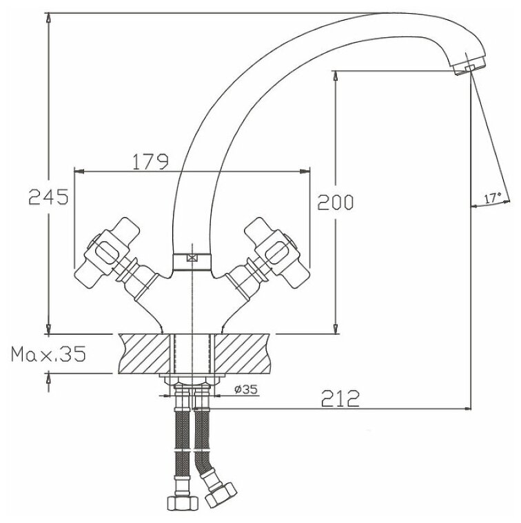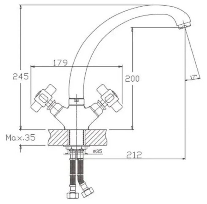 Смеситель HB18 д/кухн 2-ручк, керам к/б, хром, выс пов изл, Haiba(Китай), арт HB4218 информация: