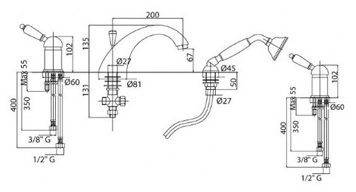 Смеситель на борт ванны Cezares ELITE BVDM 03 24 M информация: