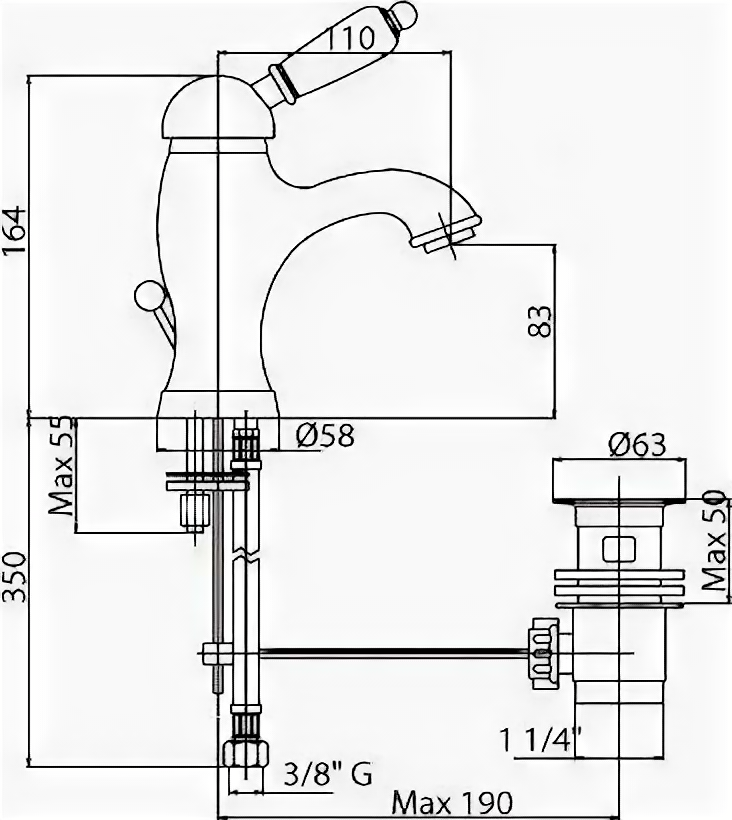 | Высота излива | 83 мм |
