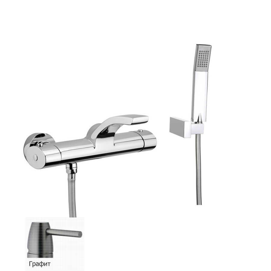 Смеситель для ванны с термостатом Webert Wolo WO980201564, черный/хром