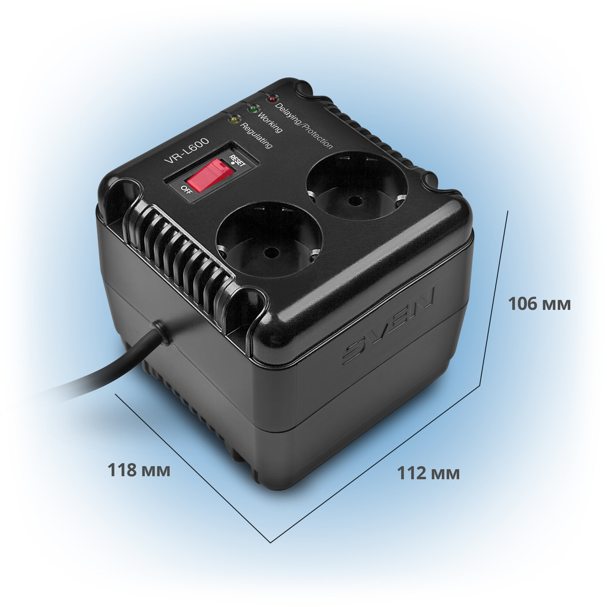 Стабилизатор напряжения SVEN VR-L 600 200Вт, 2xEURO(SV-014865), 1988127 3 575 ₽