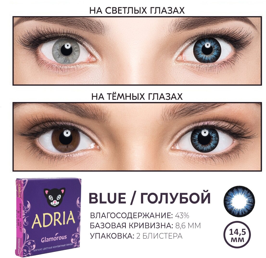 10 цен на Контактные линзы ADRIA Glamorous, 2 шт., R 8,6, D 0, blue