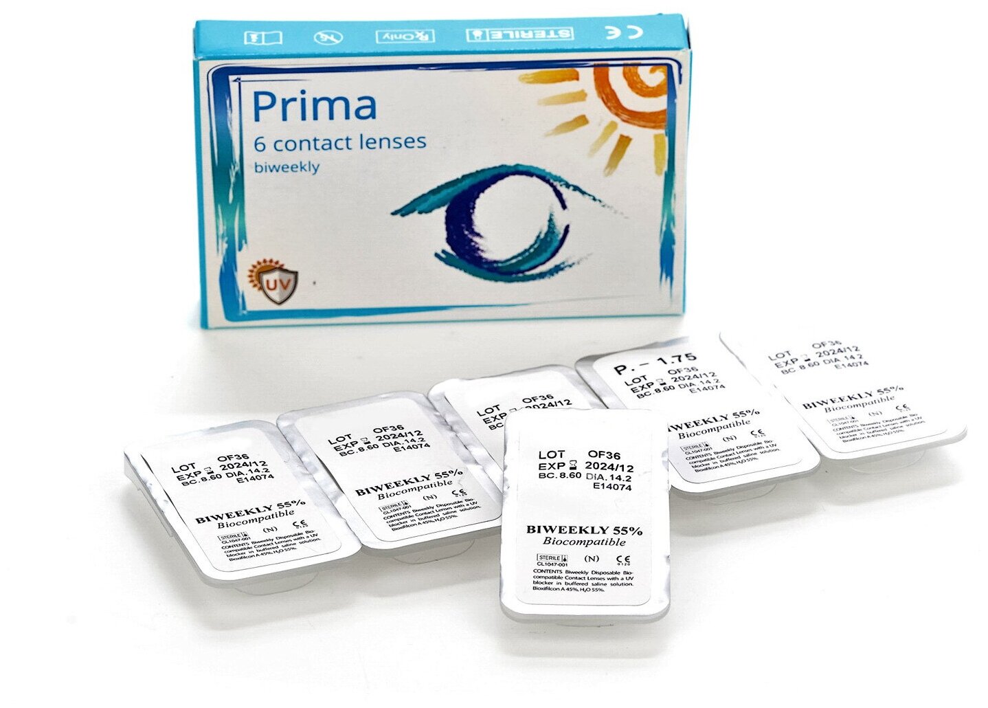 Prima 6 линз В упаковке 6 штук Оптическая сила -1.75 Радиус кривизны 8.6