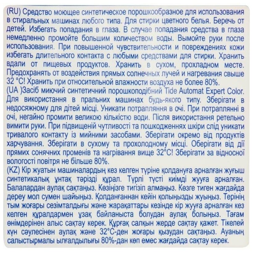 Стиральный порошок Tide Автомат Эксперт для цветного белья 15кг информация: