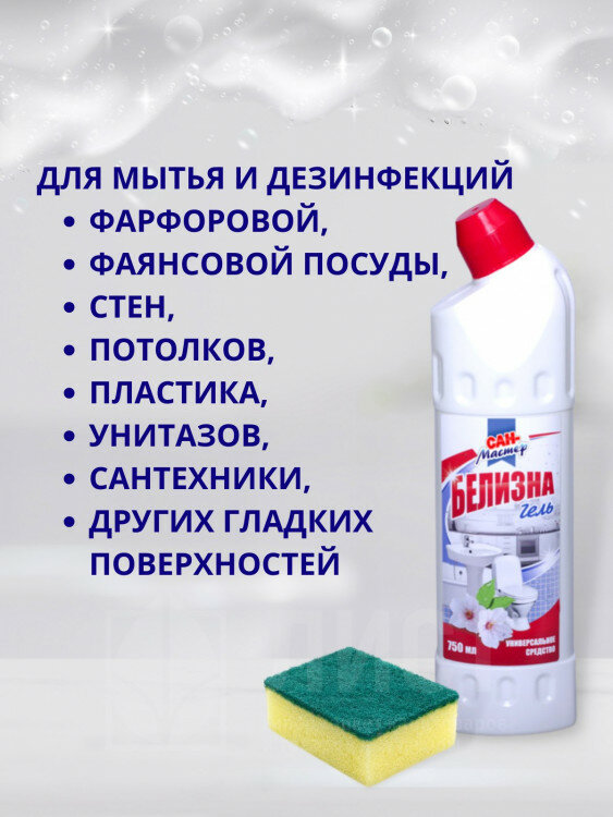 Чистящее средство для сантехники Сан Мастер "Белизна" гель 750мл информация: