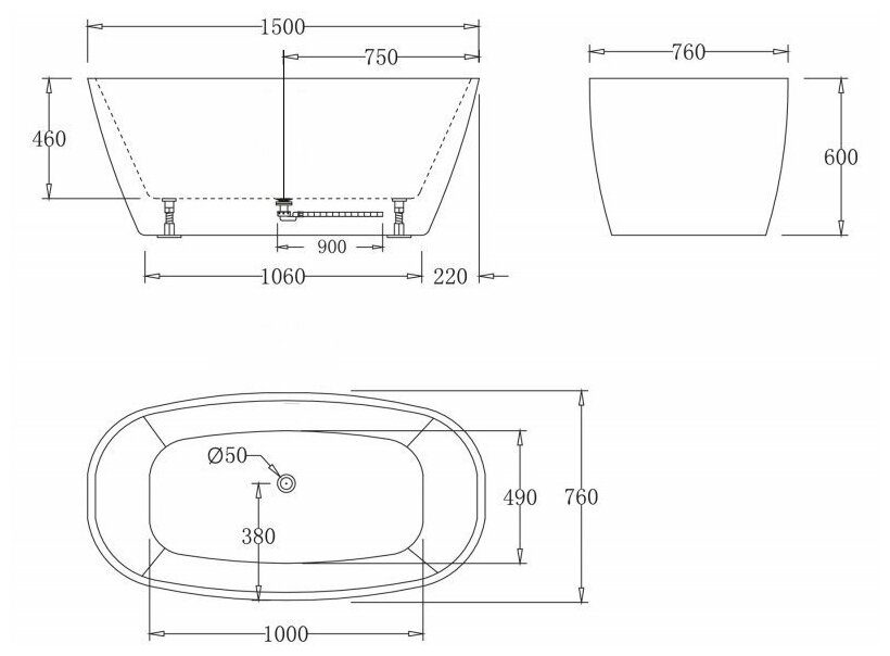 Ванна Ceruttispa COMO150 акриловая (1500x750x560) отдельностоящая, белая