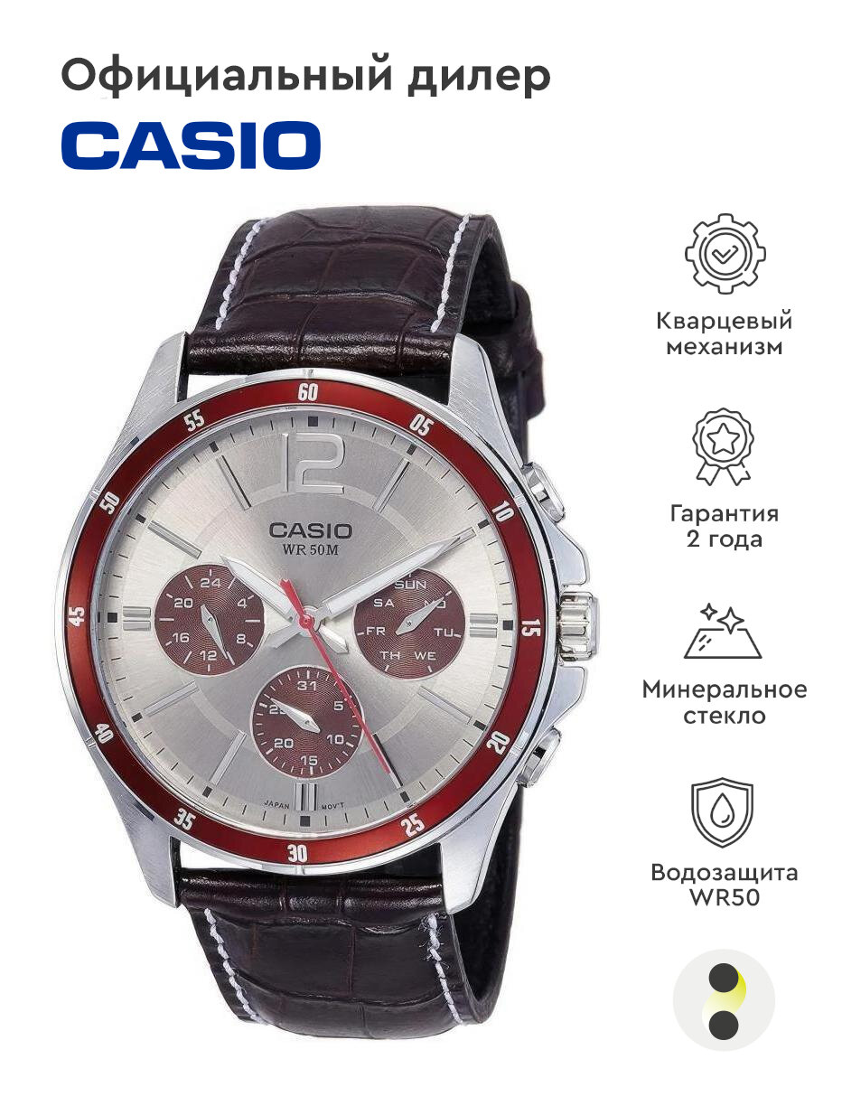 Наручные часы CASIO MTP-1374L-7A1, коричневый, серебряный
