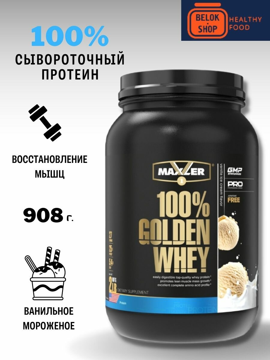 Протеин Макслер 100% Golden Whey 908 г (ванильное мороженое)