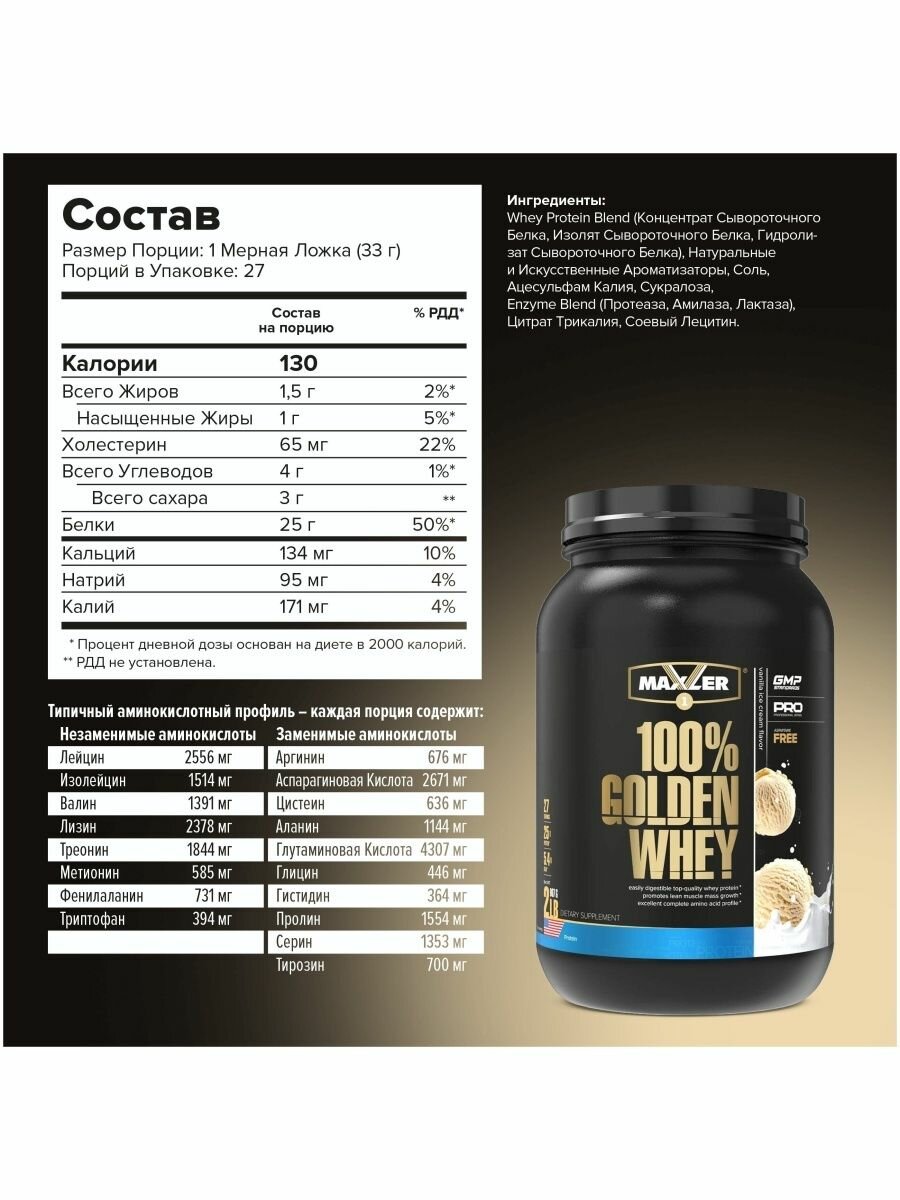 MAXLER USA Golden Whey 908 г (Vanilla Ice Cream Flavor) информация:
