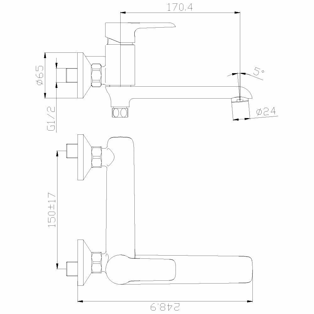 Смеситель на раковину настенный Эверест B46-350 с круглым поворотным изливом, кран-буксы 1/2", хром