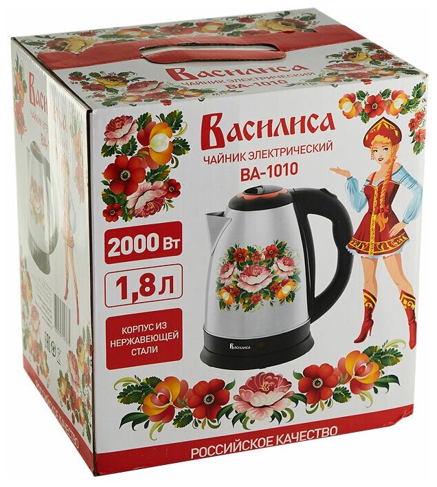 Электрочайник василиса ВА-1010 Нержавеющая сталь "Жостово": мощность 2000 Вт объем 1,8 литра