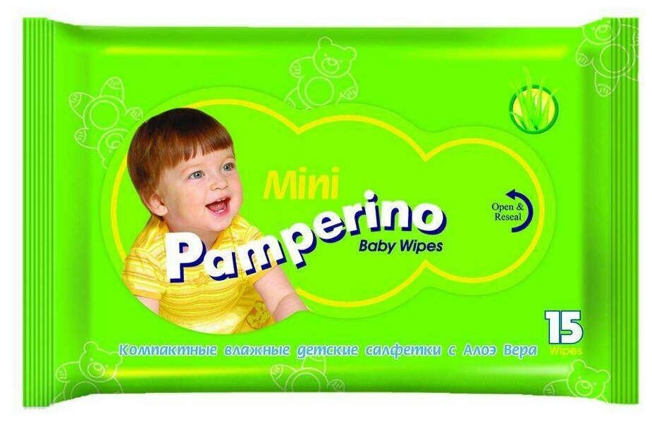 Влажные салфетки Pamperino детские, с алоэ вера, 15 шт.