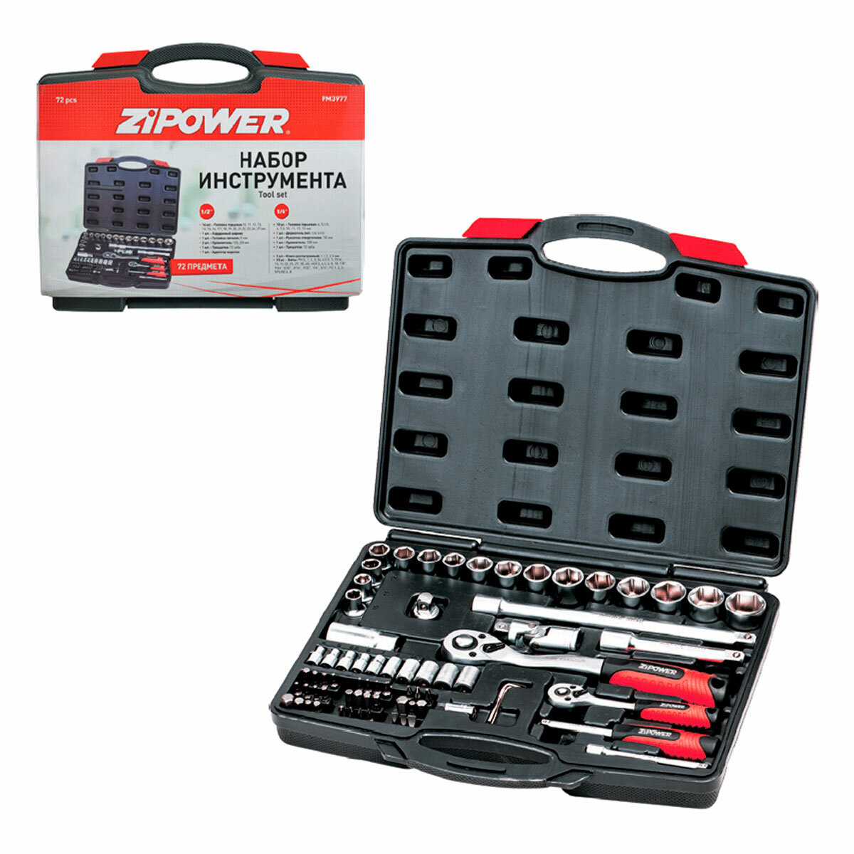 Набор Инструмента 72Пр. 1/4", 1/2", Закаленная Cr-V Сталь Zipower Pm3977, Шт ZiPOWER арт. PM3977