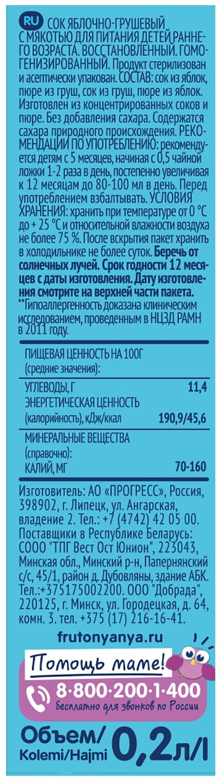 0,2Л СОК яблоко/груша ФН - фрутоняня информация: