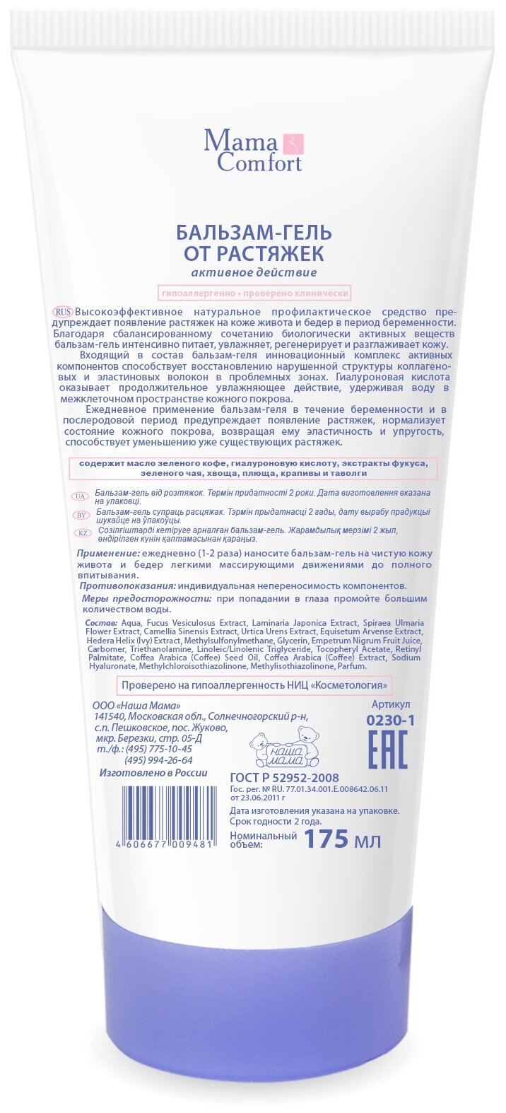 0230-1 Бальзам-гель/крем от растяжек "Mama Comfort" 175мл информация: