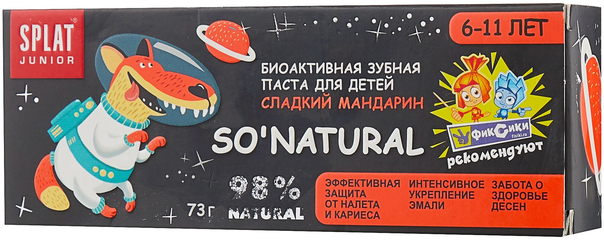 Зубная паста детская Splat, Junior So Natural, Сладкий мандарин, 73 гр