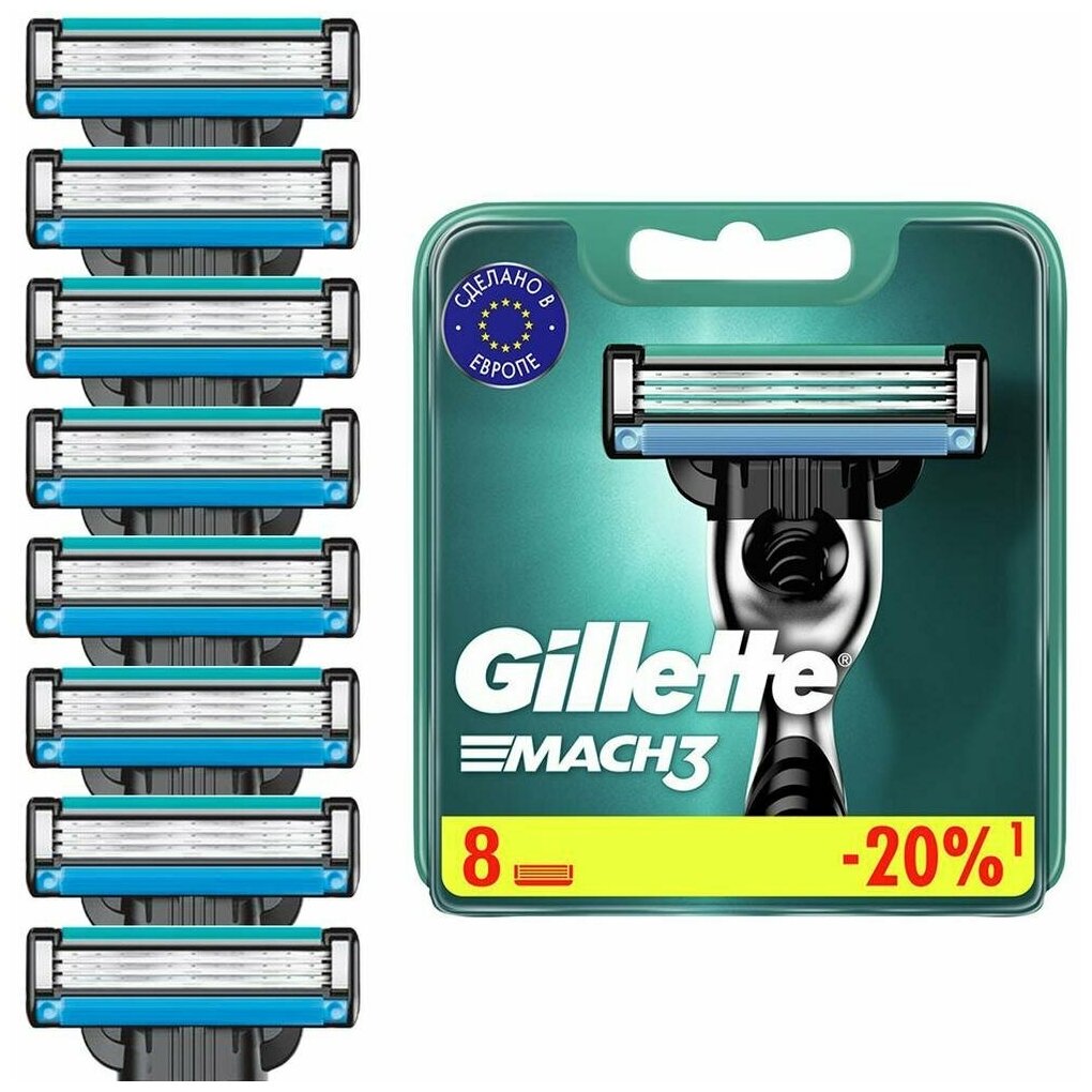 GILLETTE Mach 3 Сменные кассеты для бритья с 3 лезвиями, мужские, 8 шт