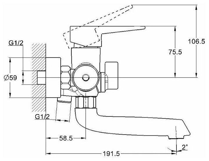 Смеситель на раковину настенный Эверест B46-350 с круглым поворотным изливом, кран-буксы 1/2", хром