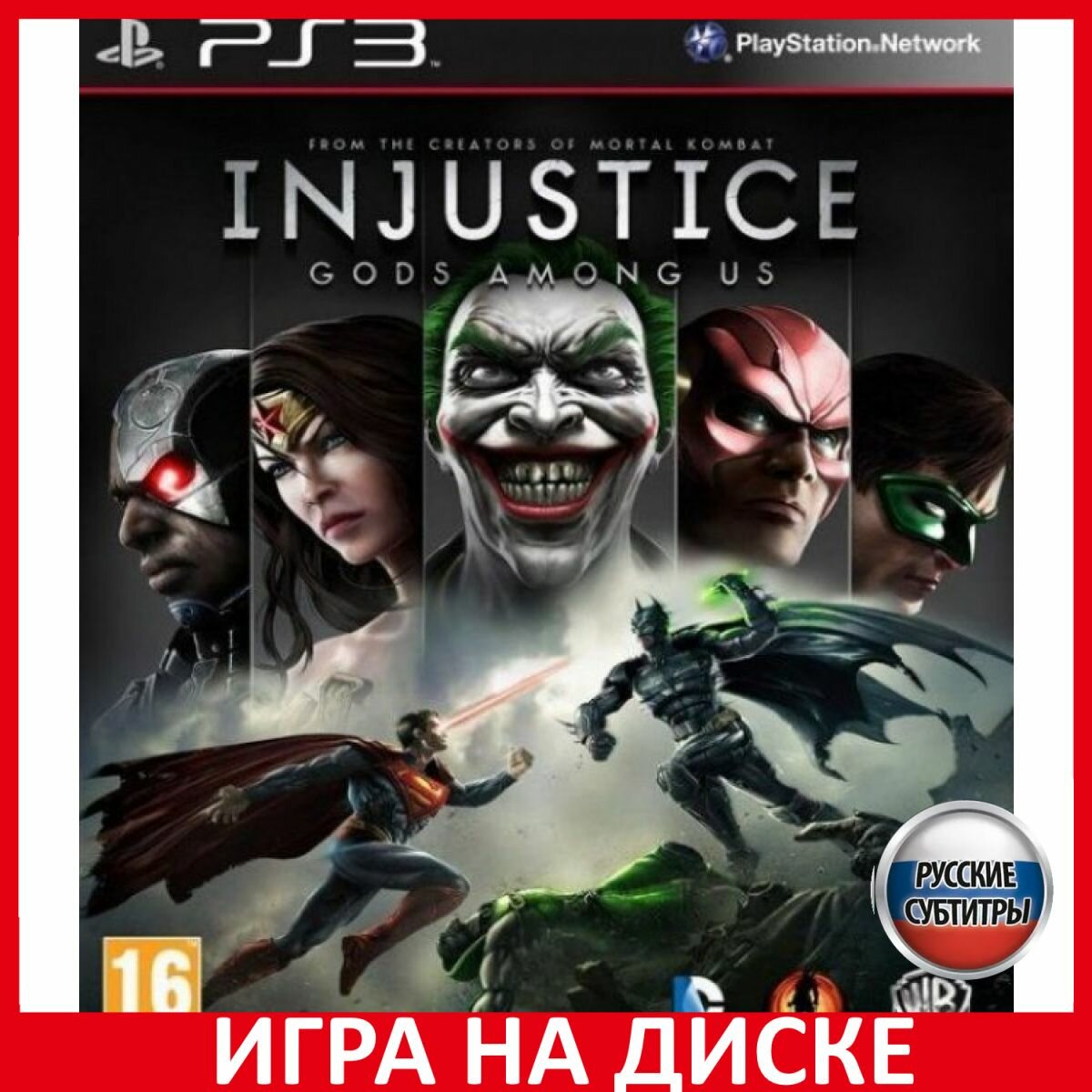 Injustice: Gods Among Us. Видеоигра (PlayStation 3, Русские субтитры) файтинг, драки, 16+ / локально 1-2 игрока, сетевая игра 2-8 игроков