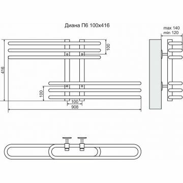 Полотенцесушитель водяной Terminus Диана П6 100х416 мм (3+3) хром из нержавеющей стали информация: