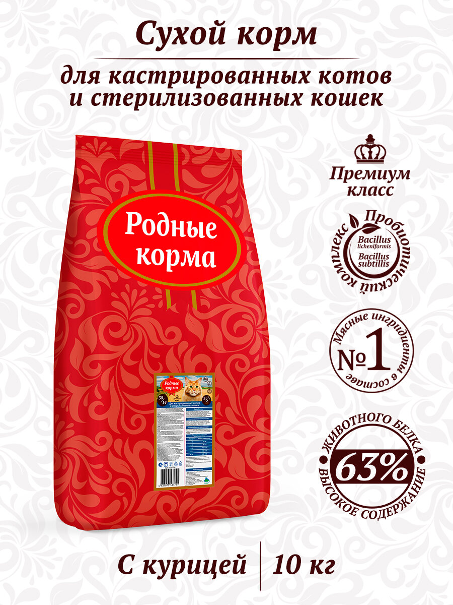 Родные корма сухой корм для взрослых стерилизованных кошек 10 кг информация: