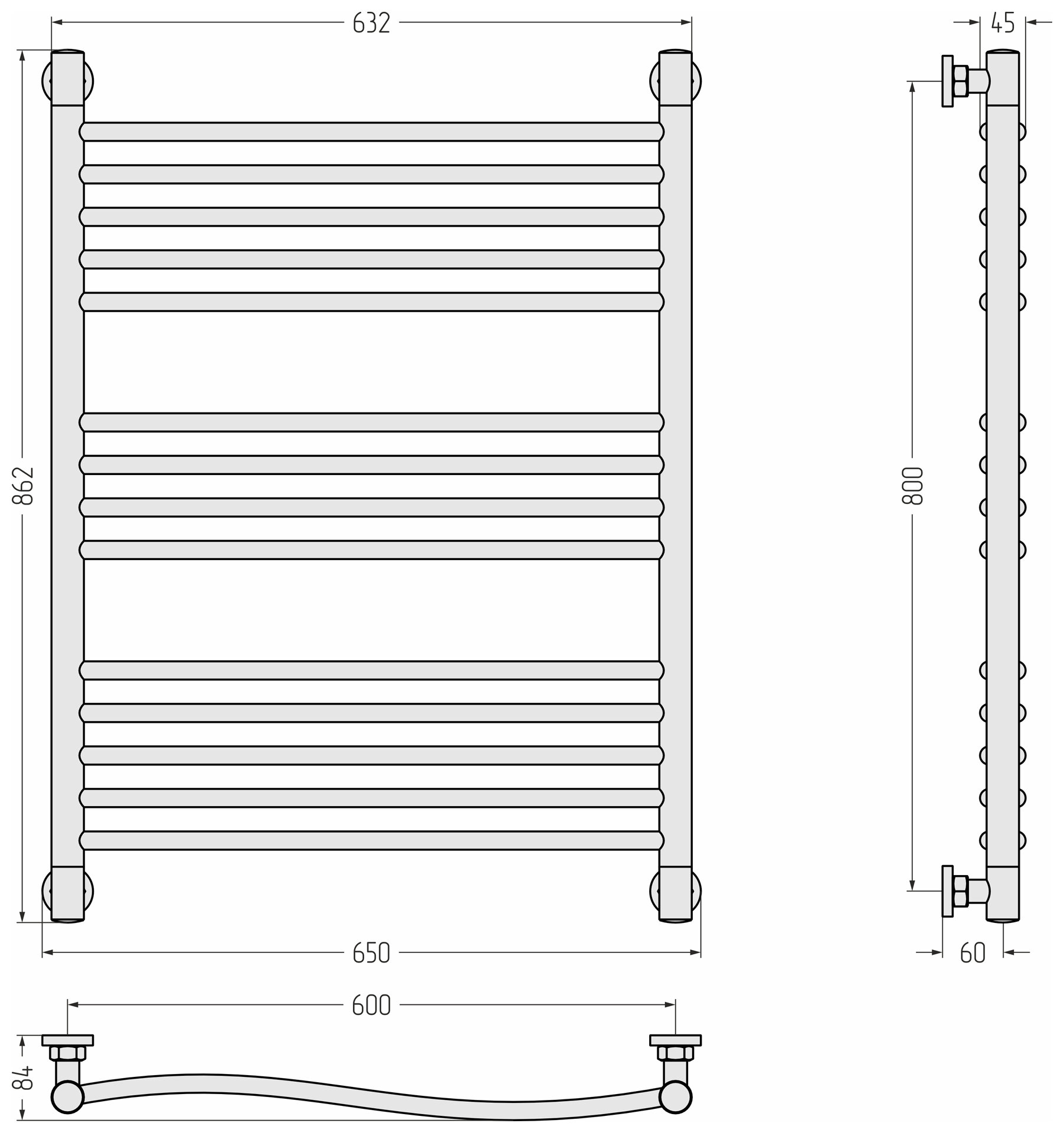 Полотенцесушитель водяной Сунержа Флюид+ 800х600 Без покрытия информация: