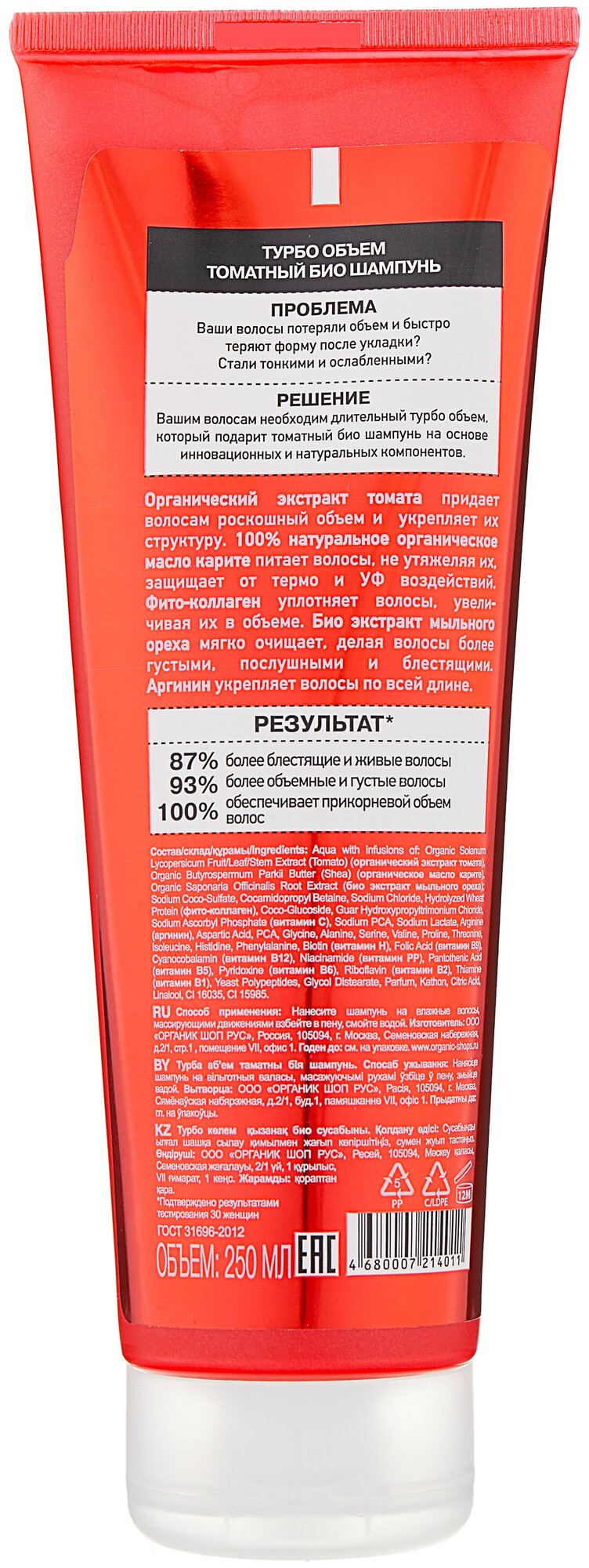 Био шампунь для волос "Турбо объем" Organic naturally professional Tomato, 250 мл информация: