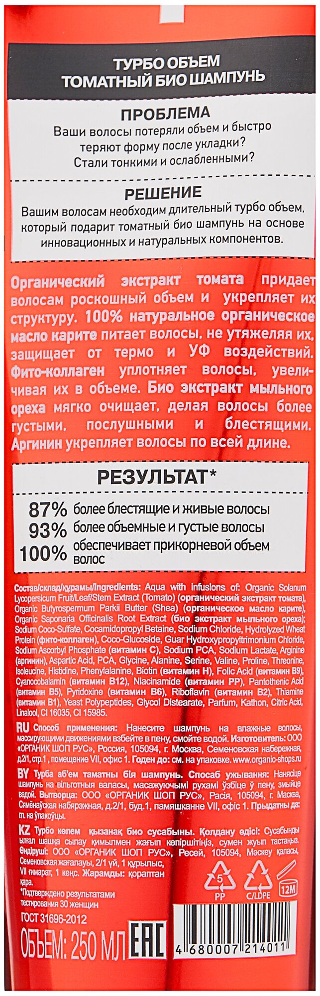 Organic Shop Tomato Био шампунь для волос "Турбо объем", 250 мл 432 ₽