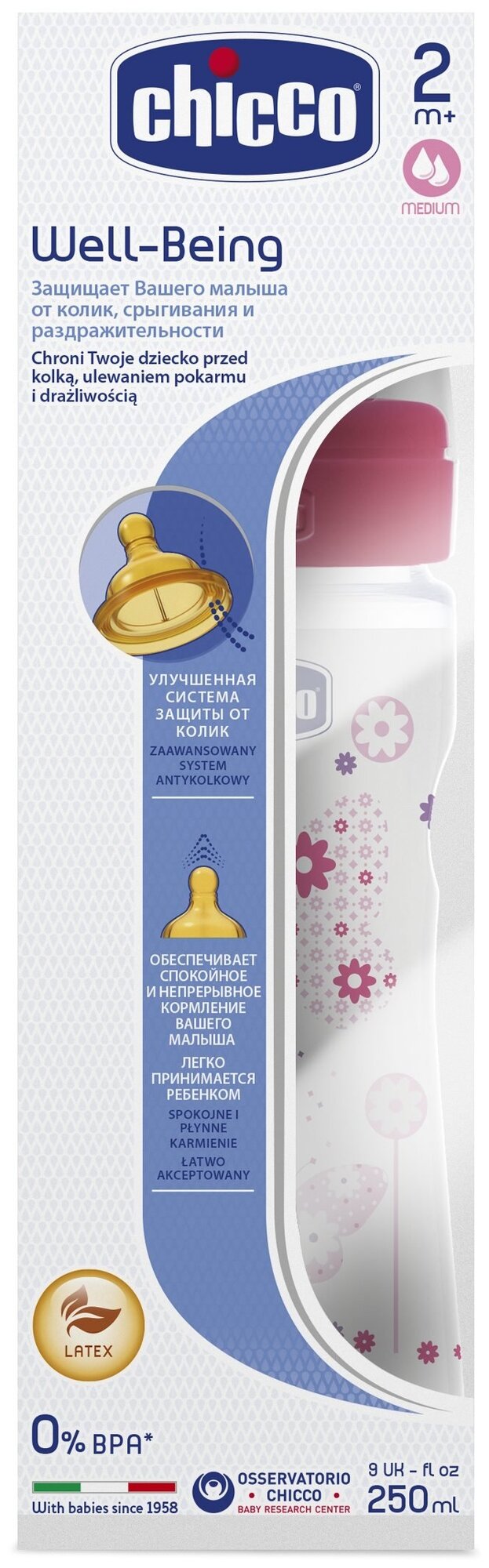 Бутылочка Chicco Well-Being латекс соска 250 мл 2 + информация:
