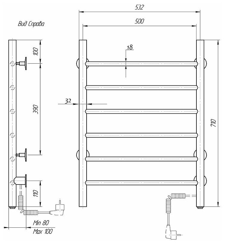 Полотенцесушитель электрический Маргроид В10 30х80, таймер, черный матовый