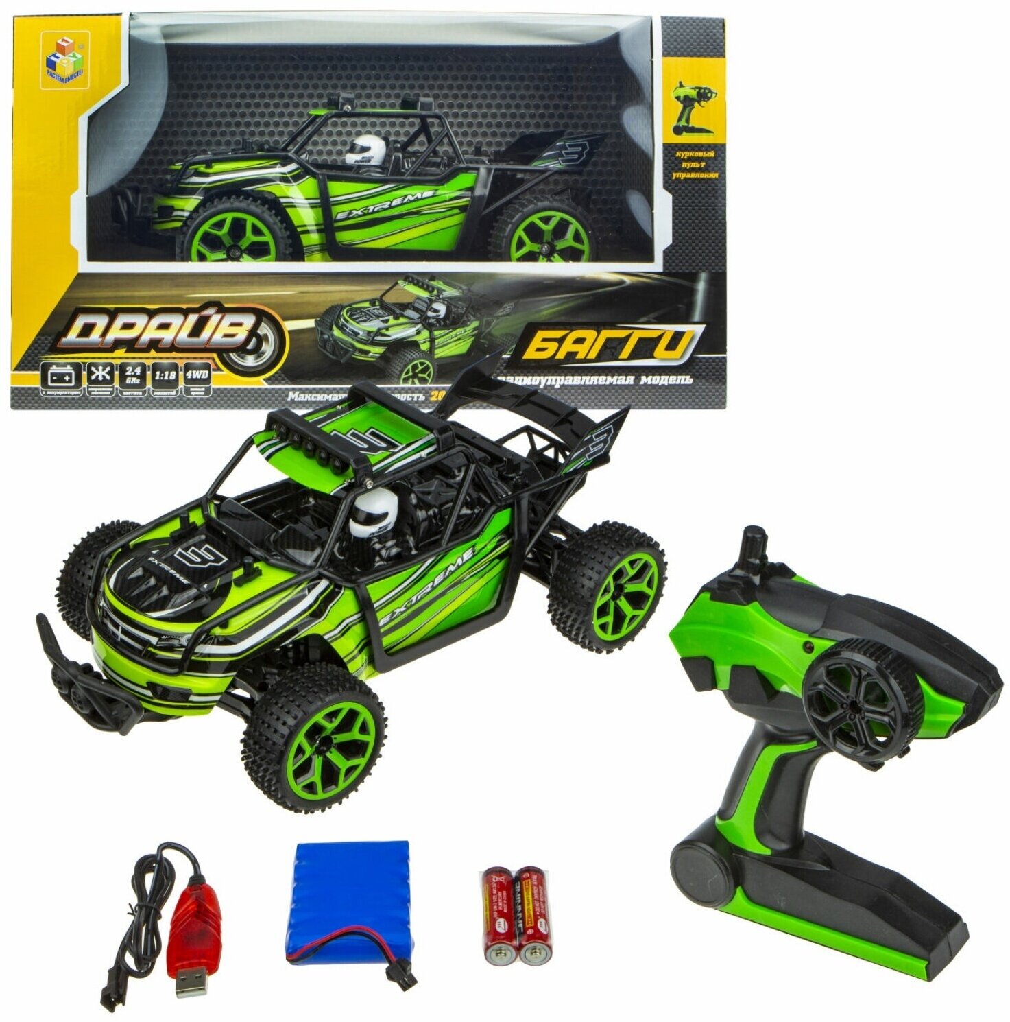 10 цен на 1toy Драйв, машина на р/у, 2,4GHz, 4WD, скорость до 20км/ч, свет, курковый пульт, с АКБ 700mAh Ni-CH, зеленый
