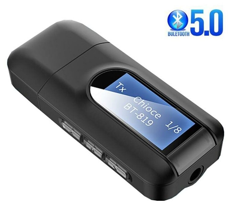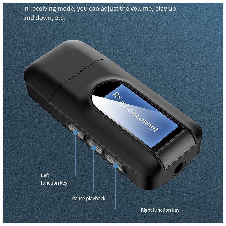 10 цен на Bluetooth 5.0 стерео аудио трансмиттер-ресивер 2в1 с дисплеем