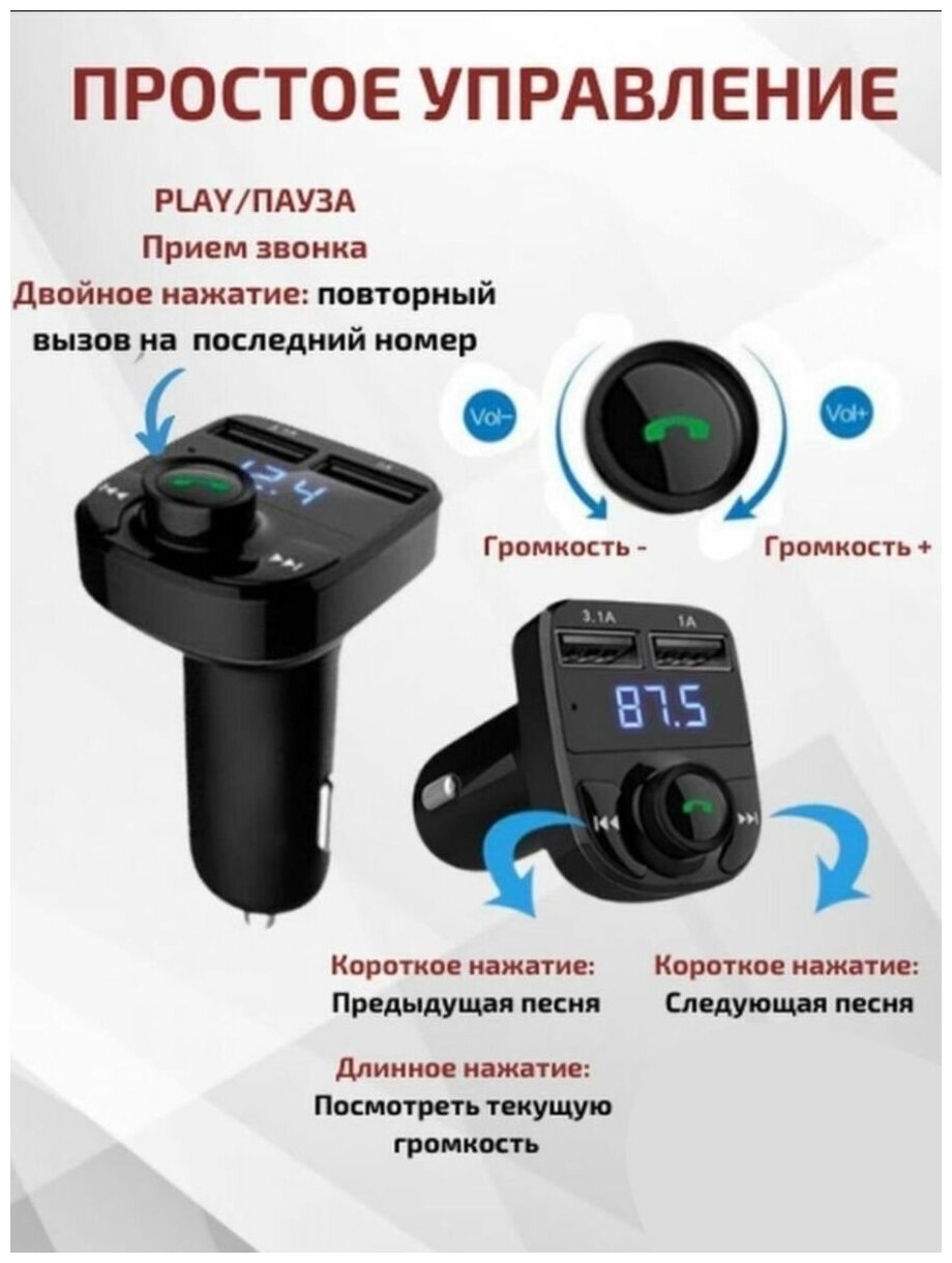 Отзывы на FM трансмиттер Bluetooth фм модулятор с 2 USB / Блютуз через радио с быстрой зарядкой / Разветвитель адаптер