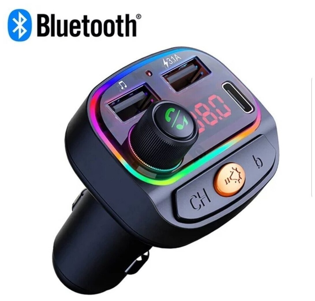 FM трансмиттер Bluetooth с RGB подсветкой / Модулятор автомобильный / Адаптер быстрой зарядки с 3 USB 3.1 A TDS-13