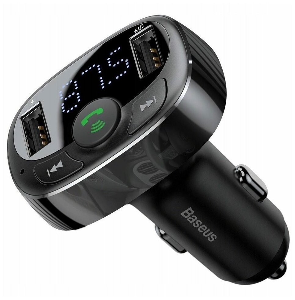 FM-трансмиттер с зарядкой, Baseus Wireless MP3 Car Charger T Typed S-16, Bluetooth 5.0, Черный