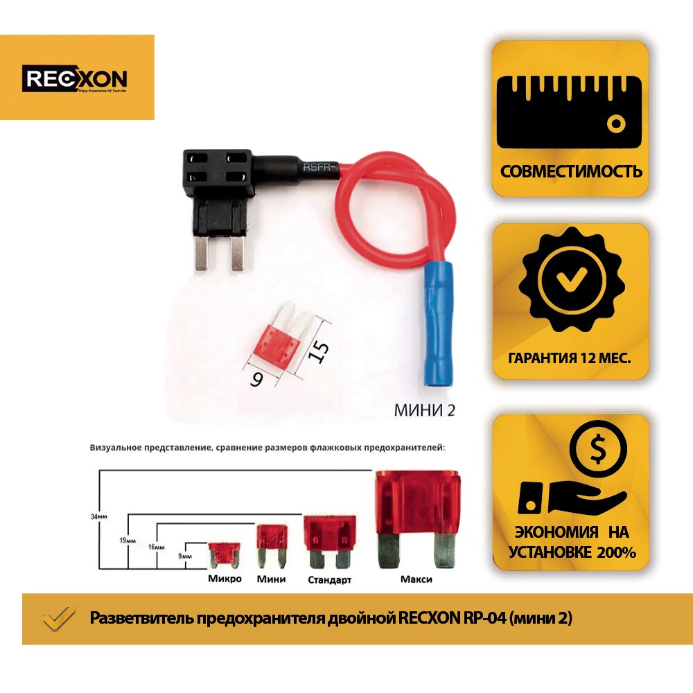 Разветвитель предохранителя RECXON RP-04 mini 2 для подключения видеорегистраторов в колодку предохранителей. информация:
