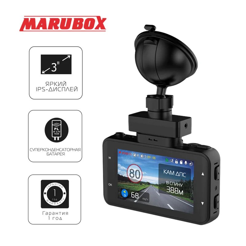 Marubox M350GPS Видеорегистратор с GPS/ГЛОНАСС базой камер, модулем Wi-Fi, магнитным креплением и с возможностью подключения второй камеры, регистратор для автомобиля, предупреждение водителя о камерах на дороге 10 997 ₽