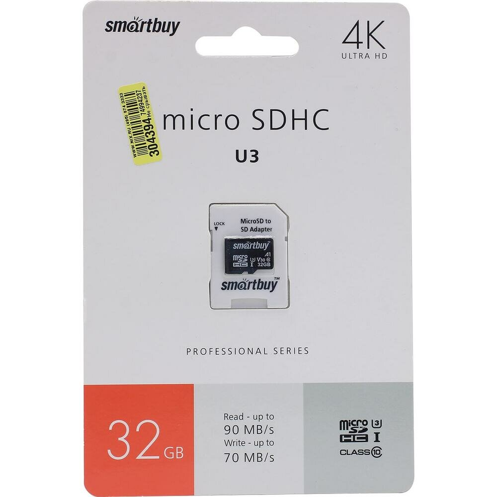 10 цен на SmartBuy Карта памяти SmartBuy Professional microSDHC Class 10 UHS-I U3 32GB + SD adapter