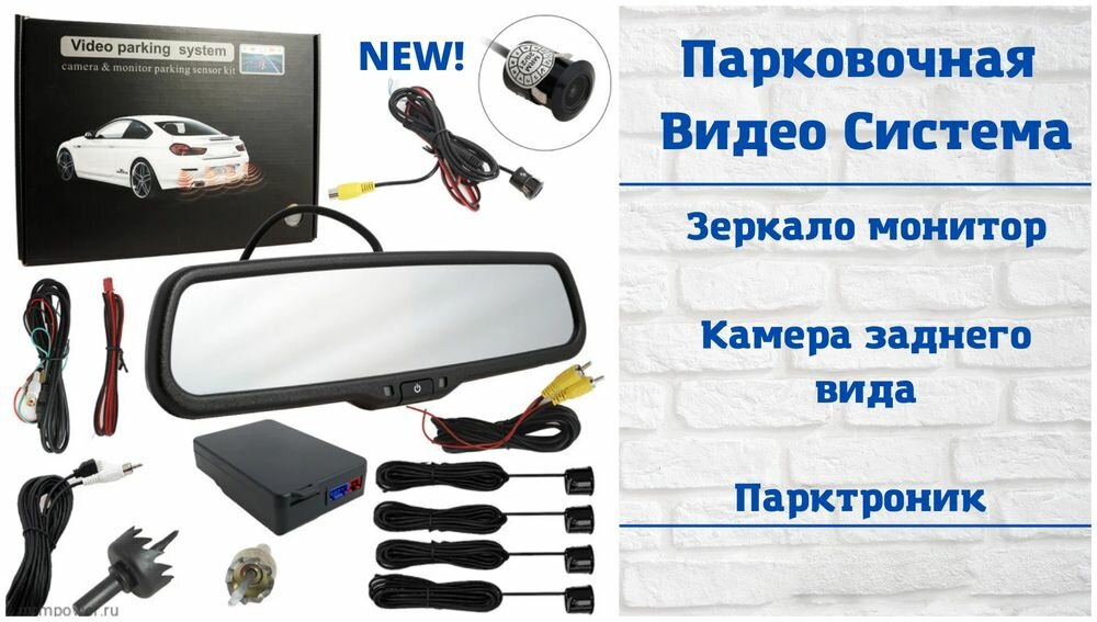 Парковочная видео система для авто ET-439 (зеркало монитор+камера з/в+парктроник) информация: