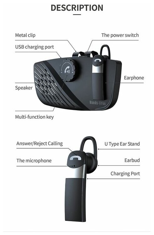 Громкая связь с наушником в автомобиль SP16, черный информация: