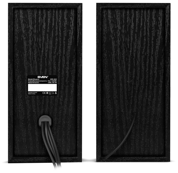 Колонки компьютерные SVEN SPS-603, 2.0, 2х3 Вт, дерево, черные, SV-015183 информация: