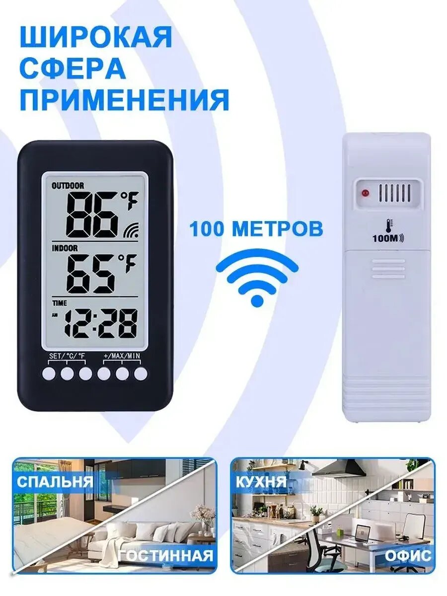 10 цен на Термометр с внешним беспроводным датчиком и часами