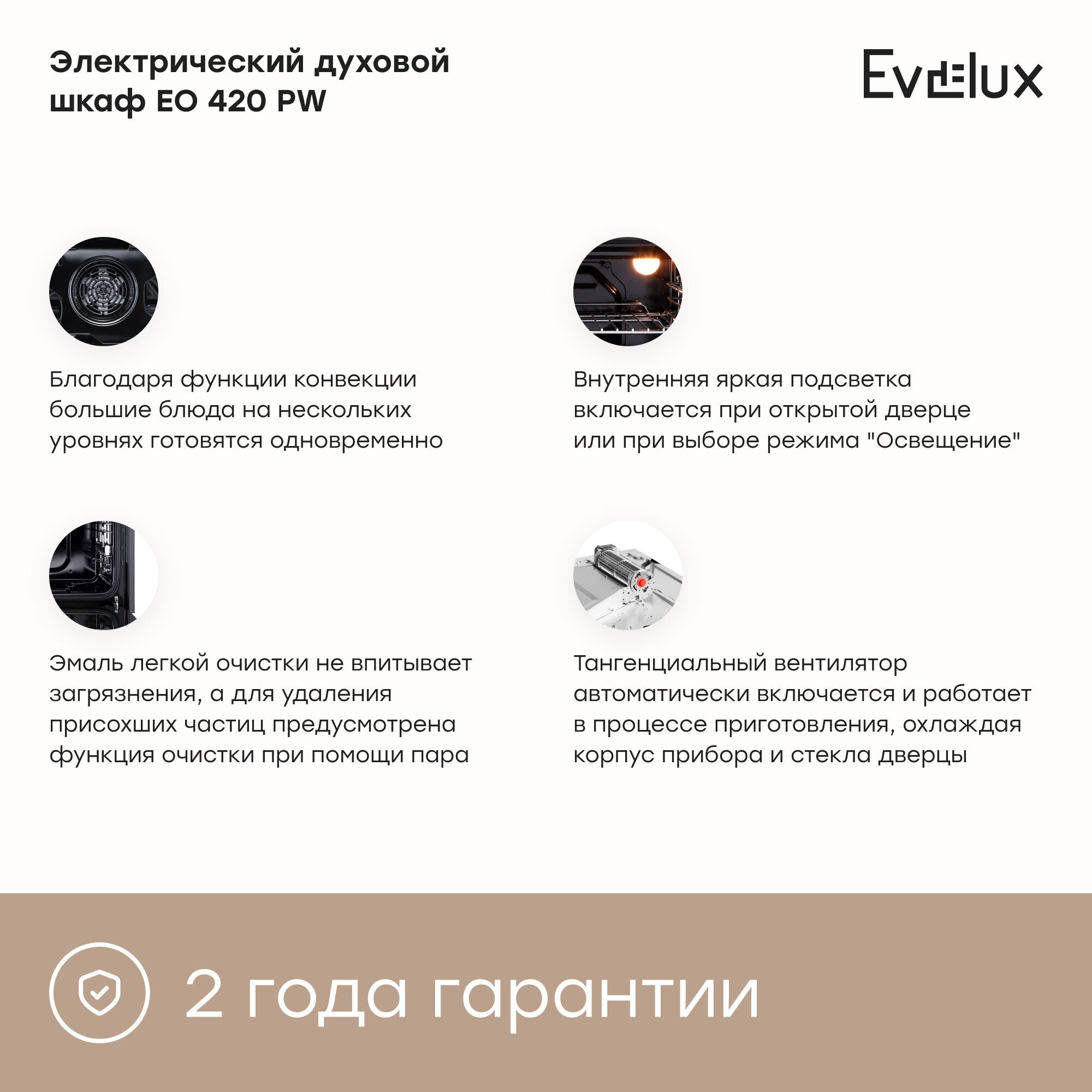 Электрический духовой шкаф Evelux EO 420 PW информация: