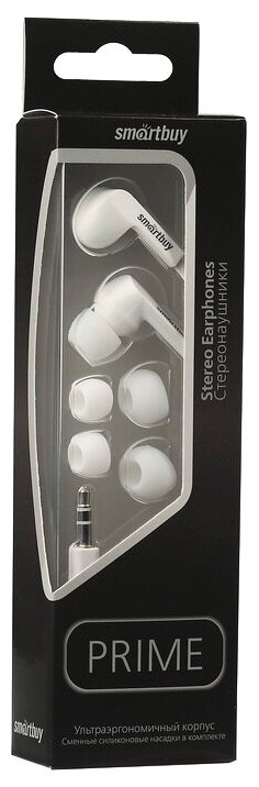 Внутриканальные наушники Smartbuy PRIME, динамики 10мм, плоский кабель, белые, 3 пары вставок (SBE-120)/60 156 ₽