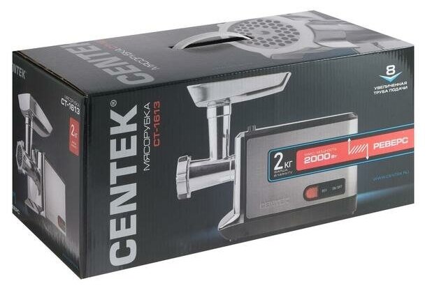 Мясорубка электрическая CENTEK CT-1613 - нерж.сталь/ 2000 Вт/ шнек V8/ металлический лоток/ 2 литых диска 7 796 ₽