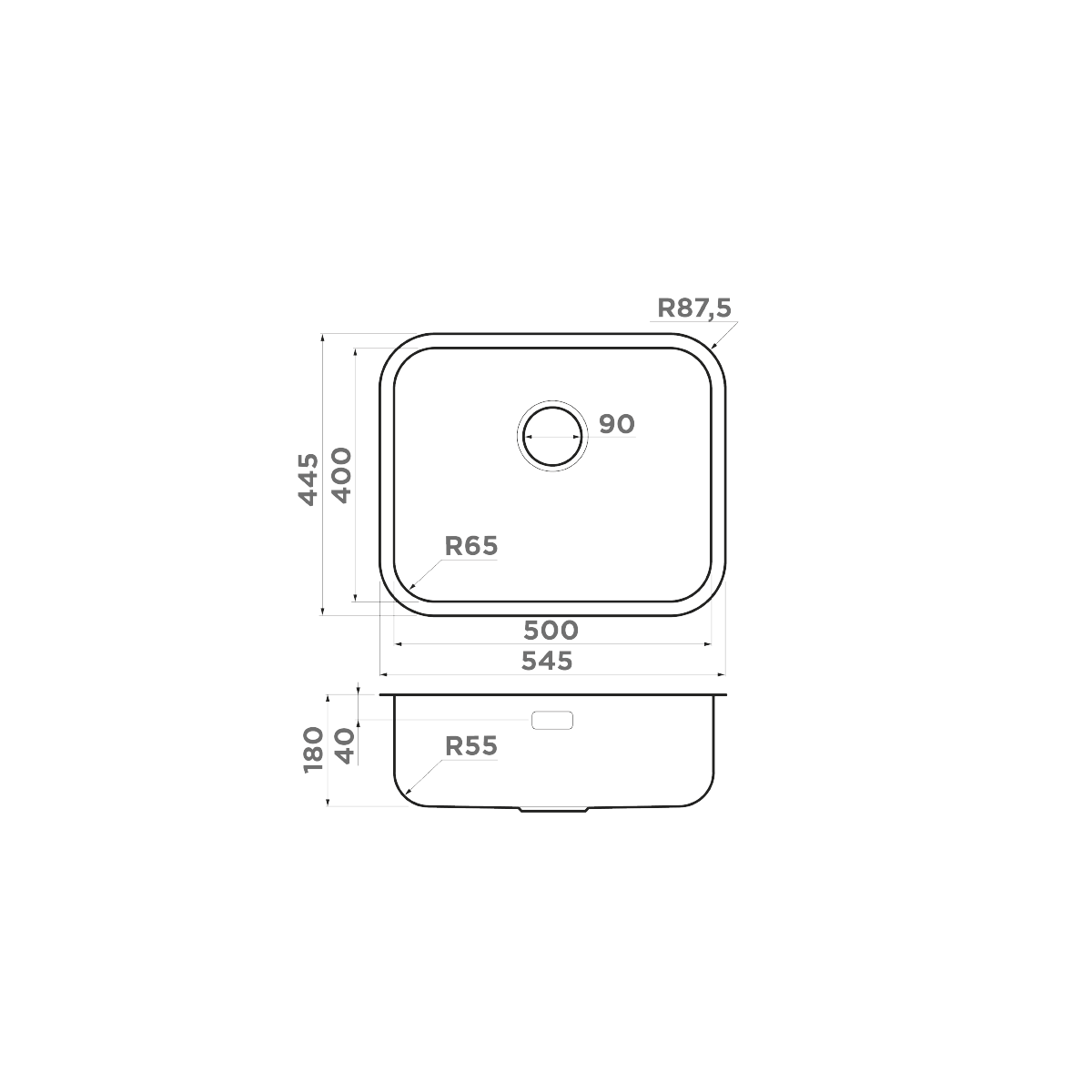 Мойка 450х505 мм с гофрированным сифоном