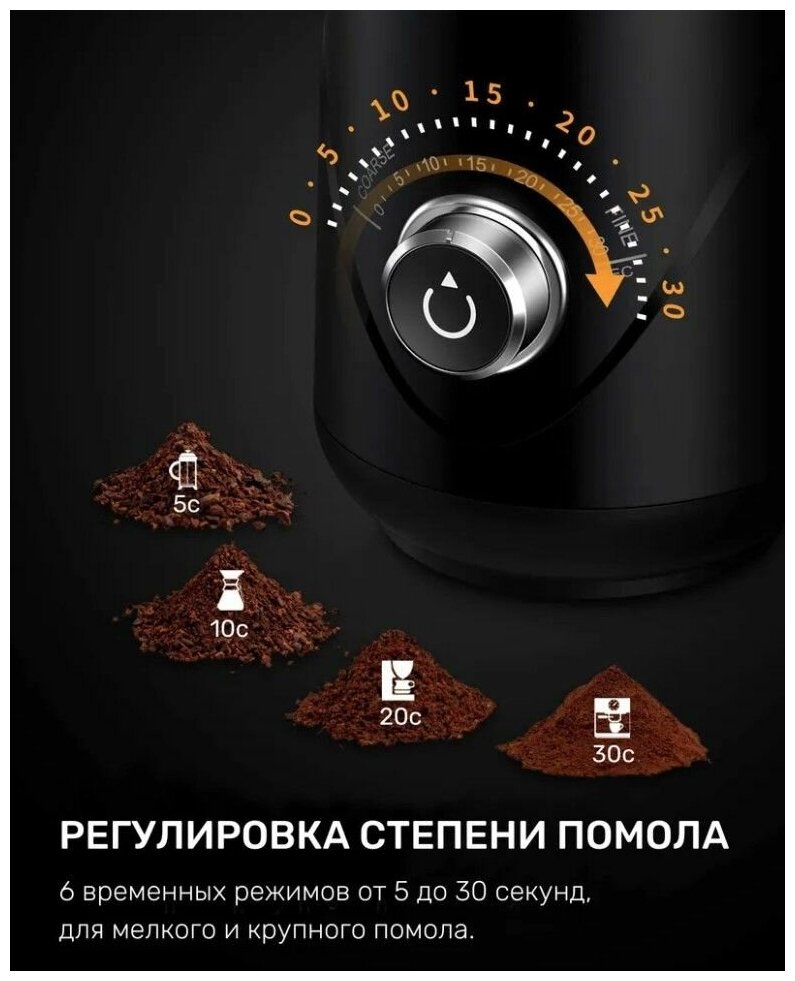 | Конструкция | дозатор, емкость для молотого кофе (на 70 г) |