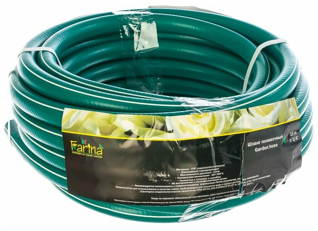 Фарина 93305 Шланг поливочный армированный зеленый 15мх3/4" / FARINA 93305 Шланг поливочный армированный трехслойный зеленый 15мх3/4" 2 539 ₽