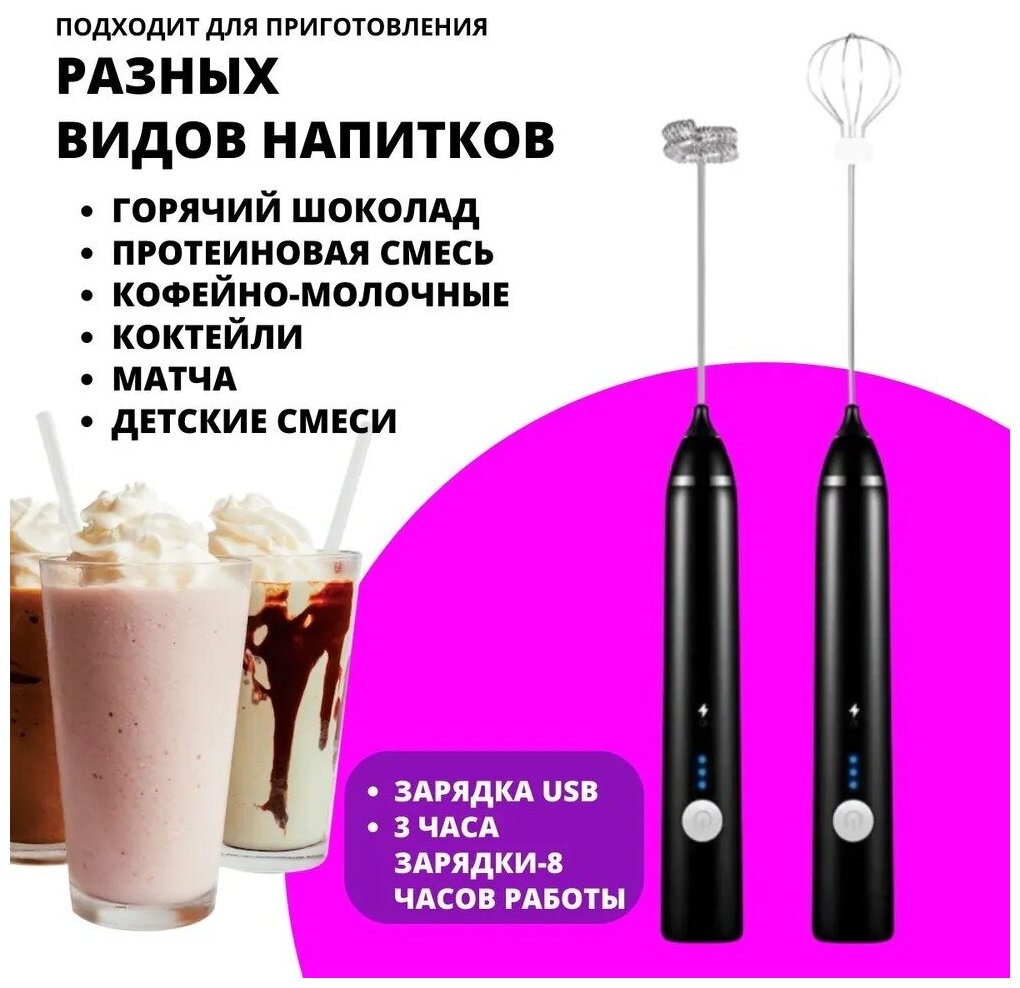 10 цен на Вспениватель молока / Мини-миксер / Капучинатор /Зарядка USB + 2 насадки