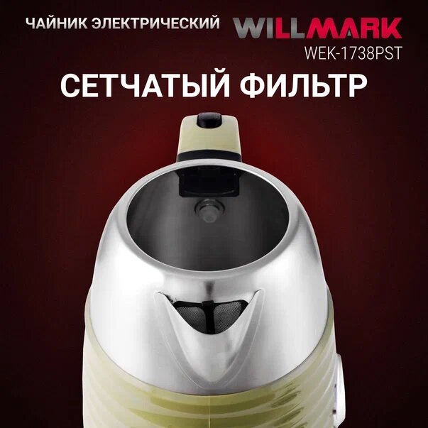 10 цен на Чайник эл. WILLMARK WEK-1738PST (1.7л, двойные стенки, эффект термоса, термометр, 2200Вт)